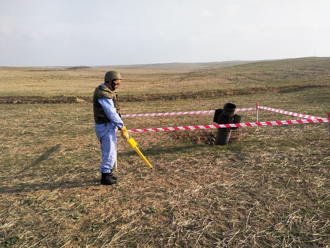 Как сообщили АПА в ANAMA, на основании поступивших 25 звонков специальными мобильными оперативными группами совместно с сотрудниками Министерства внутренних дел было осуществлено 23 оперативных выезда в село Минахорлу Агджабединского района, село Эфетли Агдамского района, Бардинский район, село Алханлы Физулинского района, села Кочарли, Гайнаг, Газйан, Сахлабад, Еникенд, а также на улицы А.Исмаилова, А.Асланова, Т. Рагимова. В ходе проведенных оперативно-розыскных мероприятий были обнаружены 2 снаряда Д-4 (П-4) калибра 122 мм с белым фосфором, 1 ракета калибра 300 мм (9М528), 1 метеорологический радиопеленгатор, используемый для военных целей, и 25 осколков разорвавшихся мин.