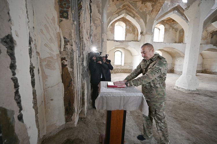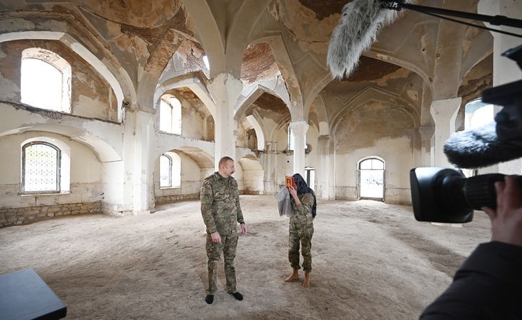 В ходе визита глава государства и первая леди посетили мечеть в Агдаме. Мечеть с двумя минаретами, служившая прибежищем для ходжалинцев, выживших во время геноцида, была жестоко разрушена коварным врагом.