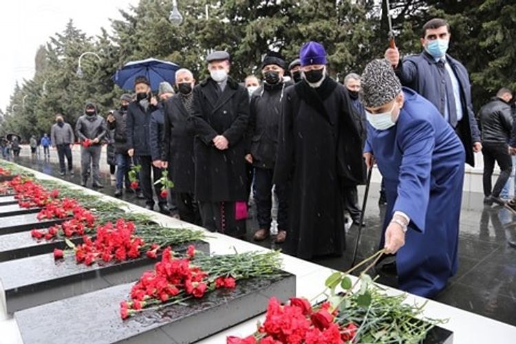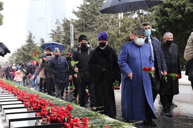 Председатель Управления Мусульман Кавказа (УМК) шейхульислам Аллахшукюр Пашазаде и руководители религиозных конфессий Азербайджана, религиозные деятели посетили Аллею шехидов.