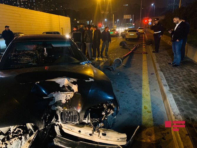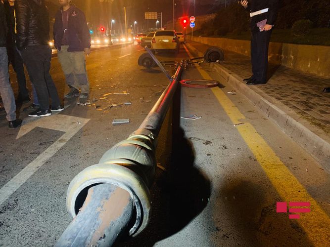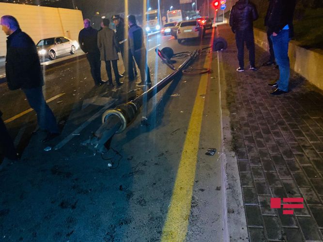 Легковой автомобиль марки BMW, управляемый Ильхамом Агаевым, потерял управление около биляджарского круга, снес фонарный столб и выехал на встречную дорогу.