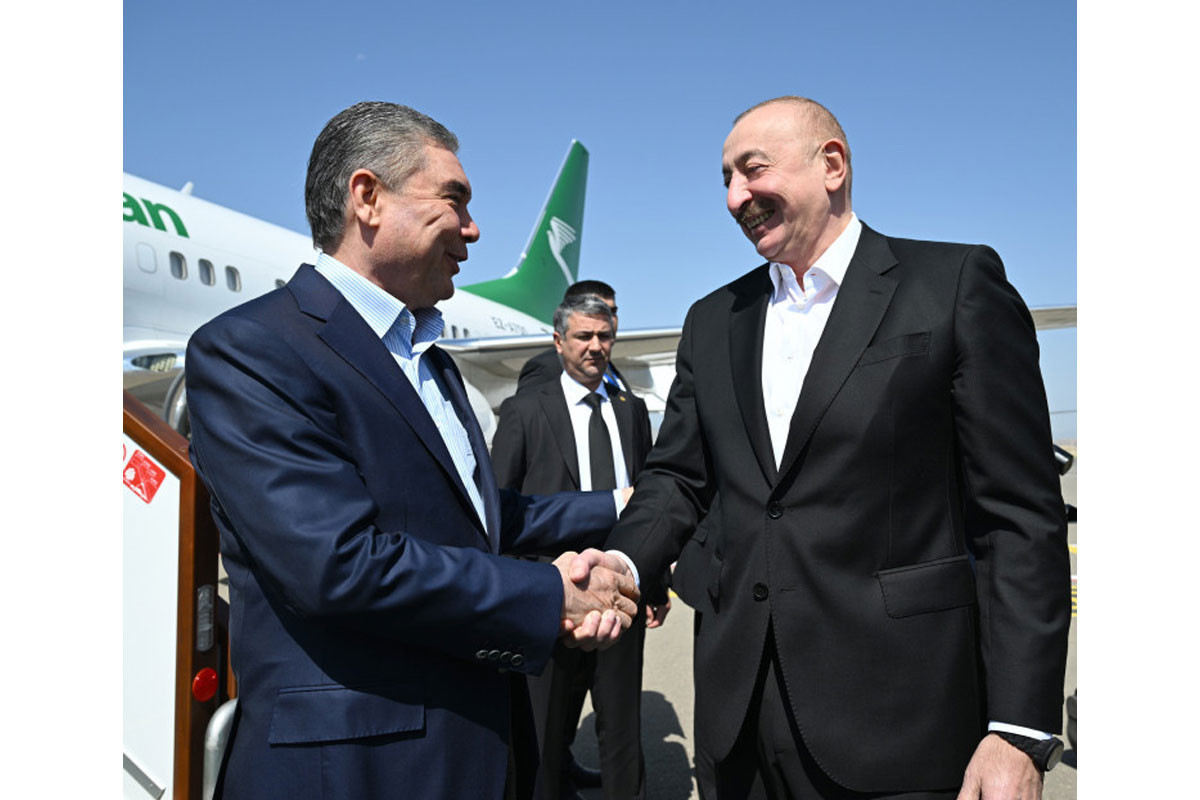 Qurbanqulu Berdiməhəmmədovu Azərbaycan Prezidenti İlham Əliyev qarşılayıb.