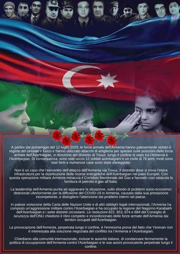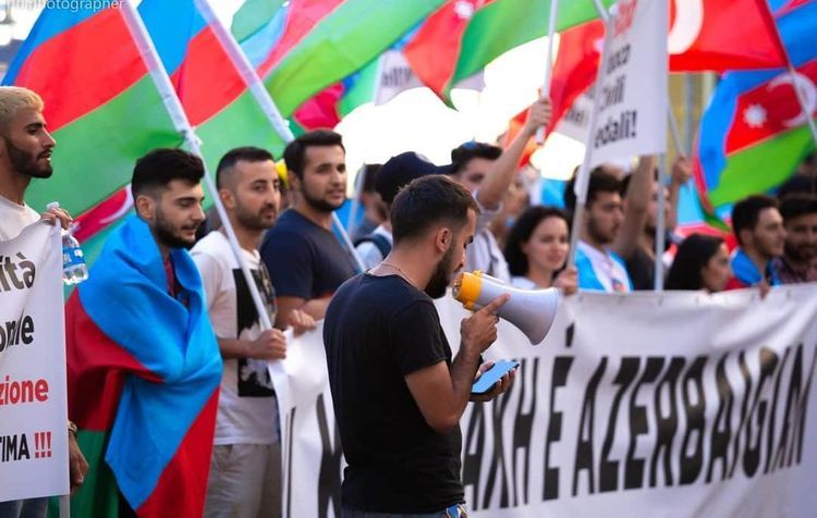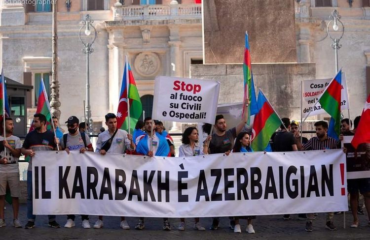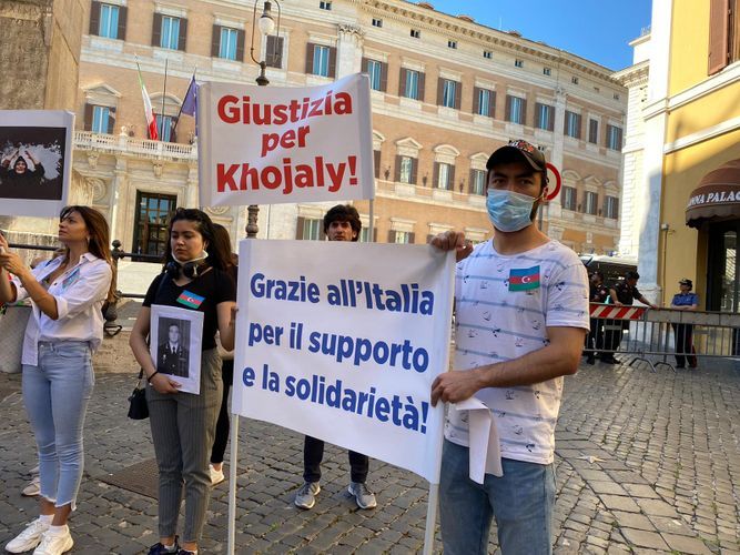 С целью доведения до властей, членов парламента, местной общественности Италии информации о военной провокации, осуществленной вооруженными силами Армении на Товузском направлении государственной границы, и продолжающейся более 30 лет агрессии Армении против Азербайджана, а также для выражения поддержки азербайджанской армии, наши соотечественники, проживающие в Италии, провели санкционированную акцию перед зданием парламента этой страны.
